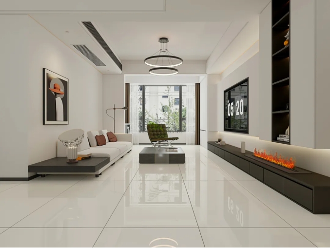 以朦胧浅灰为基调,纹理如薄雾晕染,柔和灰白脉络自然交织,仿佛远山云雾,为空间增添一抹低调而富有诗意的现代美学。